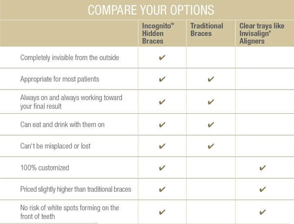 Incognito provides the very best Aesthetics available today, the Incognito bracket is completely hidden from view. No one will know that you are wearing braces unless you want them to.